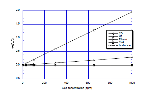 Io=傳感器在20°C , 50% R.H.400ppm一氧化碳中的輸出電流