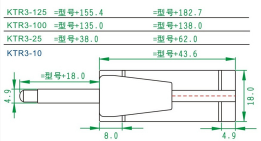KTR3彈簧內(nèi)置式自恢復位移傳感器尺寸圖如下:
