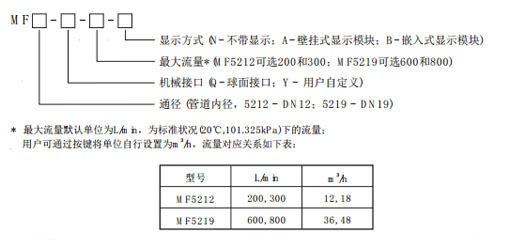 四、MF5200系列氧氣質(zhì)量流量計產(chǎn)品選型: