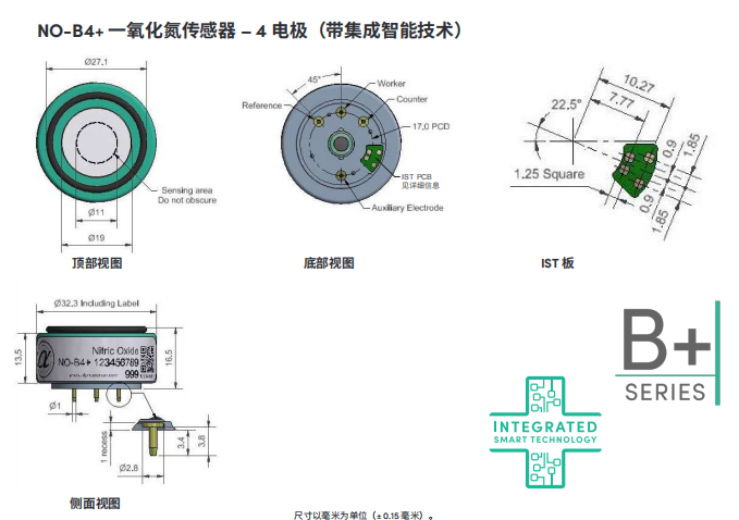 高分辨率一氧化氮傳感器(NO傳感器)NO-B4 NO-B4+ IST板數(shù)據(jù):