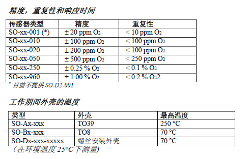測量范圍:Type SO-E2-250     0,10 – 25,0 vol.% O2
