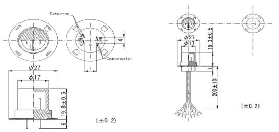 三、可燃?xì)怏w傳感器NAP-100AD  NAP-100AH 的結(jié)構(gòu),NAP-100AM和NAP-100AC的結(jié)構(gòu)