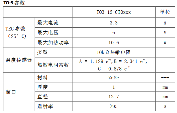 三、(量子級聯(lián)激光器)CO2氣體傳感器TO3-CIA009 TO-3 參數(shù)