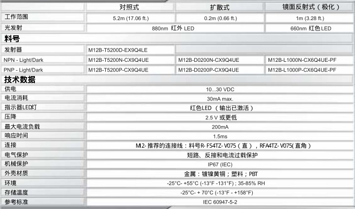 HTM Sensors 光電傳感器 - M12 系列