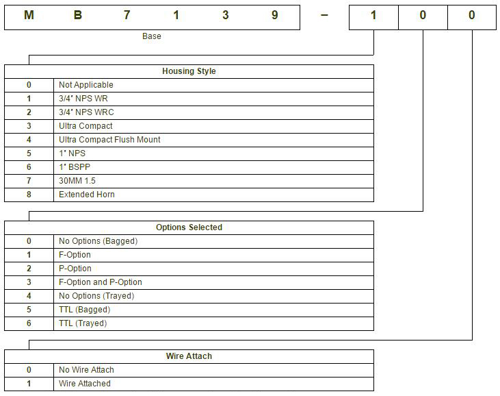 所有的零件號(hào)碼都是一個(gè)六字符的組合,后面是一個(gè)破折號(hào)和一個(gè)三位數(shù)的產(chǎn)品代碼。請(qǐng)查看下面的表格,以獲得關(guān)于三位數(shù)產(chǎn)品代碼的更多信息