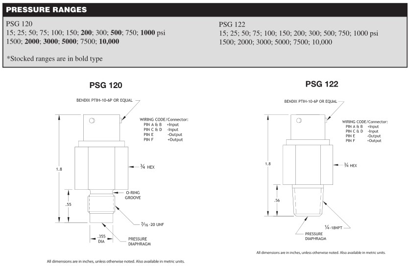 PSG 120和PSG 122是一種超小型壓力傳感器,它是由一個統(tǒng)一的不銹鋼隔膜制造的,它可以從一塊不銹鋼材料中分離出薄板和厚壁。這個設計產(chǎn)生了一個非常靈敏但堅固的傳感器,能夠覆蓋整個壓力范圍從15psi到15,000 psi。PSG 120和PSG 122傳感器在腐蝕性流體環(huán)境中是理想的,并被推薦用于涉及粗糙處理的應用,或者需要完全密封的傳感器。