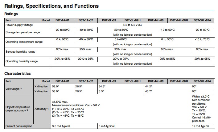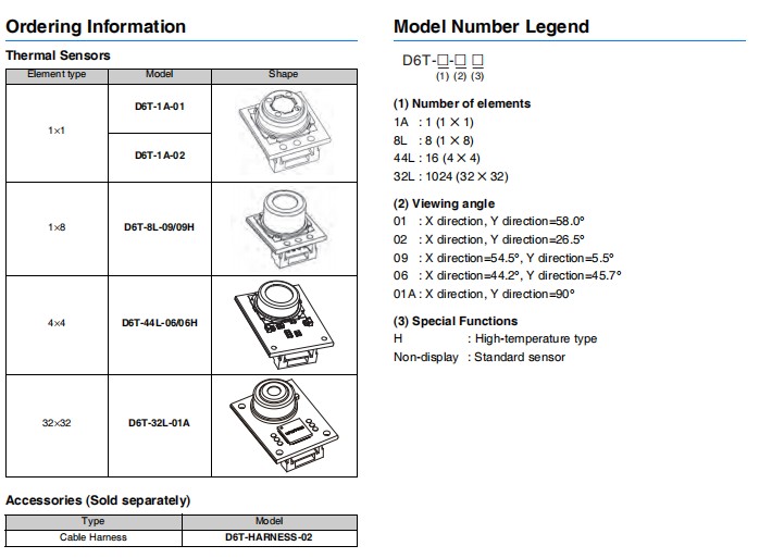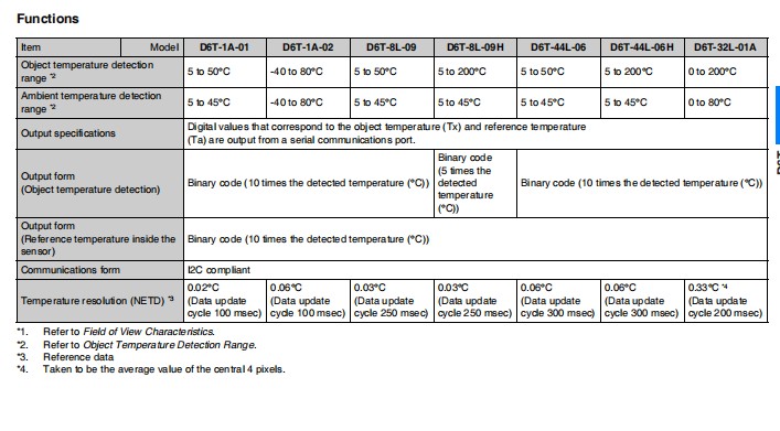 紅外測(cè)溫傳感器 MEMS非接觸溫度傳感器 D6T-44L-06 參數(shù):