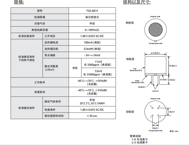四、日本Figaro 甲烷傳感器 CH4傳感器 氣體傳感器 TGS6814 參數(shù):