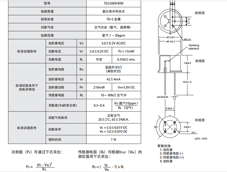 日本figaro 空氣污染物檢測 氣體傳感器 TGS2609-B00 描述: