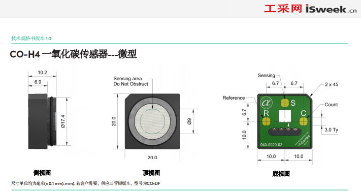 英國Alphasense CO 一氧化碳傳感器 電化學 微型 - CO-H4