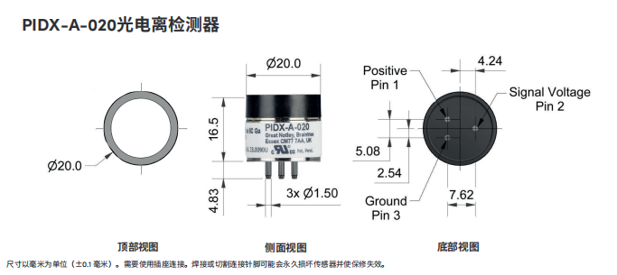 英國(guó)Alphasense VOC 光電離子傳感器 高級(jí)PID傳感器 – PIDX-A-020 尺寸: