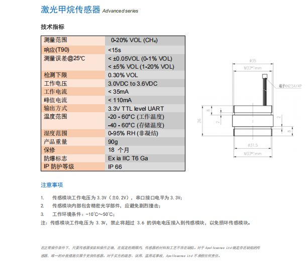 激光甲烷傳感器 AG-6-CH4-2822-A 參數(shù):