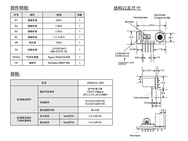 日本Figaro LP氣體預(yù)校準(zhǔn)模塊 LPM2610 - D09 參數(shù):