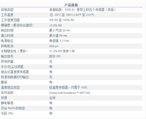 五、HIH7000系列 數(shù)字式濕度/溫度傳感器產(chǎn)品規(guī)格