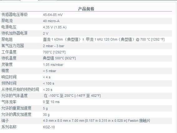 五、氧氣傳感器(O2傳感器)KGZ-10系列產(chǎn)品規(guī)格
